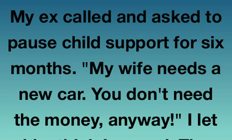 My ex called and asked to pause child support for six months. “My wife needs a new car. You don’t need the money, anyway!” I let him think I agreed. The next week, I came to drop off our son….