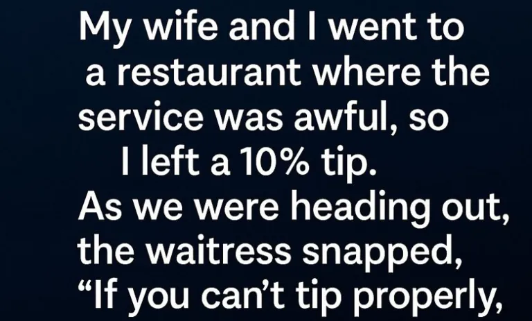 After a long day on the road, my wife and I stopped at a small restaurant just looking for a quiet meal. The food was fine, but the waitress seemed overwhelmed—slow, distracted, almost trembling. When the bill came, I left…