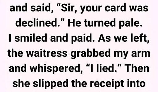 The restaurant was warm and dimly lit, the kind meant to feel romantic. When the bill arrived, the waitress leaned in and whispered, “Sir… I’m so sorry. Your card was declined.” The words hit like a dropped glass. My date…