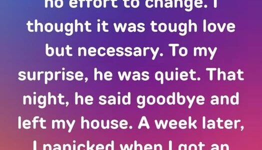 I finally told my 29-year-old son, Daniel, he had two weeks to move out. For years I’d paid his bills, filled his fridge, and watched him sleep until noon. Every talk about work or responsibility ended in arguments, and that…