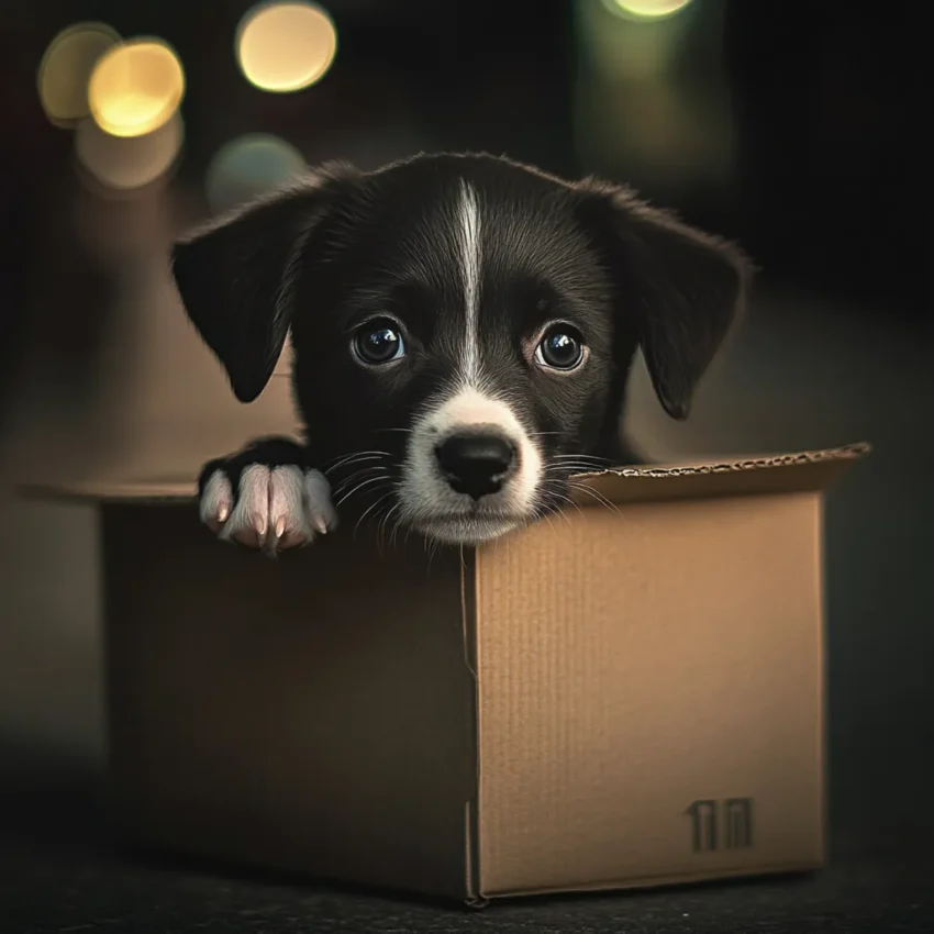 Burt’s arthritic knees protested as he bent down to investigate. Inside, a tiny black and white puppy shivered, its eyes large and pleading. A crumpled note was taped to the box: “Take care of him!”