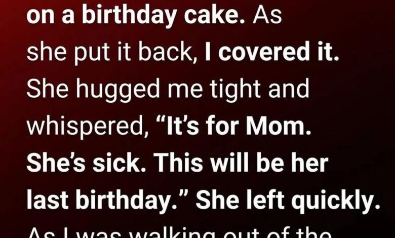 It felt small—nothing special. But when I handed her the receipt, she looked up with wide, grateful eyes, then surprised me with a quick, tight hug. In a trembling voice, she said the cake was for her mother, who wasn’t feeling well. She just wanted to make her smile.