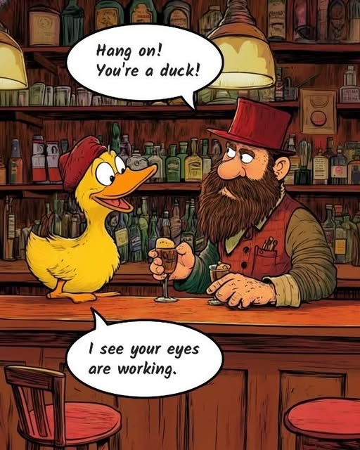 The bartender stares. “You’re a duck… and you talk?!”
