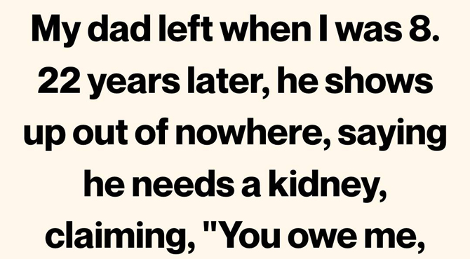 He told me he’d found me through social media. He said he was sick. That his kidneys were failing. That doctors said a transplant was his best chance.