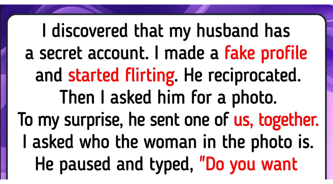 I discovered that my husband has a secret account. I made a fake profile and started flirting. He reciprocated. Then I asked him for a photo. To my surprise, he sent one of us, together.
