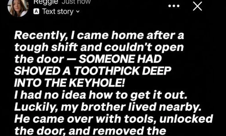 After a long and exhausting work shift, all I wanted was to get inside my home, kick off my shoes, and enjoy some quiet. That’s when I noticed the key wouldn’t turn. No matter how carefully I tried, the lock wouldn’t budge. Confused and frustrated, I leaned closer and realized something was blocking the keyhole. I had no idea how it got there or how to remove it safely. Tired and overwhelmed, I called my brother, who lived nearby. He arrived quickly, calm and practical, and managed to help me get inside. We both assumed it was a strange coincidence—an inconvenience, but nothing more.