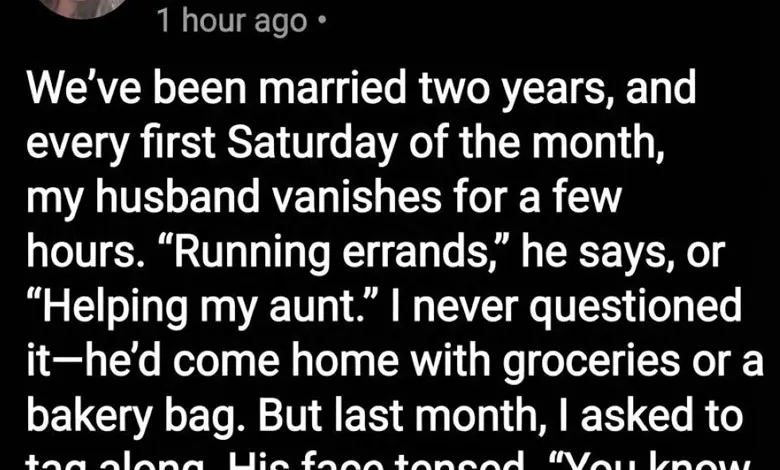 The first Saturday of every month had always felt ordinary—quiet, predictable, almost comforting. It became a rhythm of our marriage: coffee in the morning, a kiss on the cheek, and his casual announcement that he’d be back in a few hours. I never doubted him. He returned with bread still warm in its paper bag or groceries carefully tucked away, proof that nothing unusual had happened. Trust, I believed, was built on not asking questions when there was no obvious reason to ask. But when I suggested joining him one month and watched his shoulders stiffen, something invisible cracked. His words about his aunt not liking me felt rehearsed, like a line he’d practiced alone. That night, the house felt louder than usual, filled with thoughts I didn’t want to think.