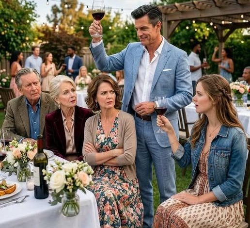 He stood there with the glass still in his hand, waiting, and the silence stretched just long enough to make everyone feel it.