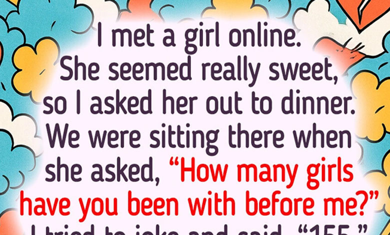 I met a girl online. She seemed really sweet, so I asked her out to dinner. We were sitting there when she asked, “How many girls have you been with before me?” I tried to joke and said, “155.”
