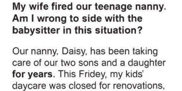 When I got home, I found my wife yelling at nanny while nanny was just..