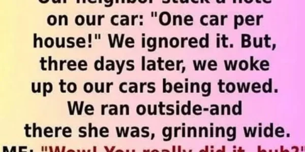 It started with a note under our wiper—block letters, three exclamation points, and a threat: “One car per house! Move the extra one or else!” We laughed it off; the street had no such rule, and both our cars were…