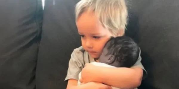 The stillborn baby was placed in his older brother’s arms