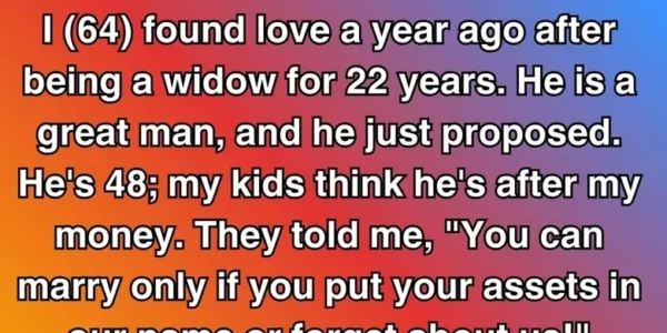 I (64) found love a year ago after being a widow for 22 years. He is a great man, and he just proposed. He’s 48; my kids think he’s after my money. They told me, “You can marry only if…