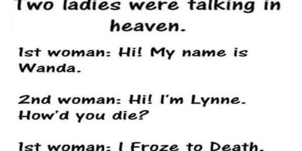 I came across this hilarious story and just had to share it! It imagines a funny encounter between two women, Wanda and Sylvia, in heaven as they swap their “how did you get here” stories. Wanda reveals she froze to…