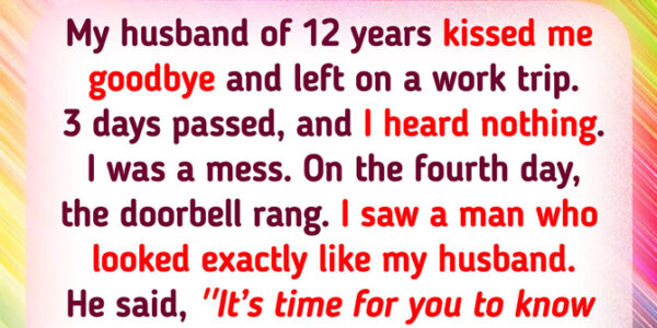 My husband of 12 years kissed me goodbye and left on a work trip. 3 days passed, and I heard nothing. I was a mess. On the fourth day, the doorbell rang. I saw a man who looked exactly like…